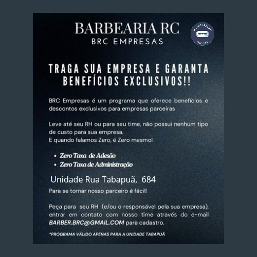 Barbearia RC Tabapuã Localizada na Rua Tabapuã, 684 - Itaim Bibi